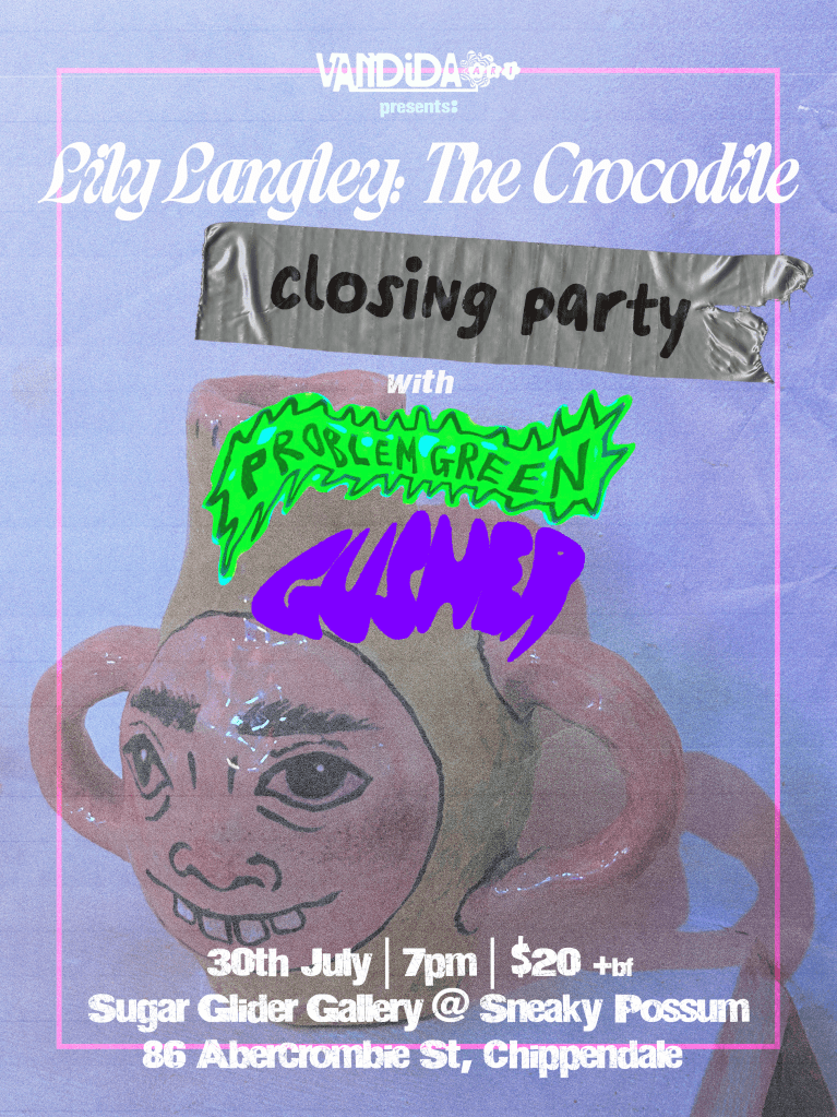 Special Thanks to: Fiona Macpherson, Vandida ARI and Sneaky Possum for organising and hosting. Thank you Nice China and Lonely Skeleton for opening night performances and Gusher and Problem Green for closing night performances.